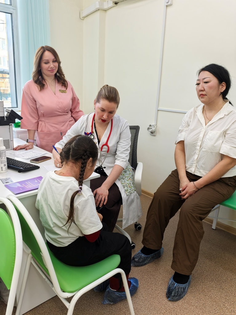 Сегодня же состоялись консультации, которые провели врач-педиатр-неонатолог ФРМ СМК «Тонус», эксперт Благотворительного фонда «БЭЛА. ДЕТИ-БАБОЧКИ» Мария Косарева (г. Нижний Новгород) и врач-дерматовенеролог, м.н.с. лаборатории патологии кожи у детей ФГАУ «НМИЦ здоровья детей», эксперт Благотворительного фонда «БЭЛА. ДЕТИ-БАБОЧКИ» Ольга Орлова (г. Москва). Первой пациенткой врачей стала малышка из Якутска.