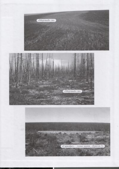 Там дополнительно выяснено: площадь радиоактивного загрязнения от взрыва составляет свыше 5000 кв. км; цезий-137 с высоким содержанием обнаружен в 625 км от места взрыва на пойме р. Марха; начиная от эпицентра взрыва, в пределах 3,7 км от дозовой нагрузки погиб лиственничный лес (“мертвый лес”) и его подстилка (кусты, мох, ягель и др.) на площади 160 га;  в 2015 году  (спустя 8 лет  после так называемых реабилитационных работ) в древесных, кустарниковых и травянистых растениях содержание цезия-137, стронция-90, плутония-239 в 40-5000 раз превышало их фоновый уровень. Там мониторинг не ведется и что там творится, сейчас никто не знает.