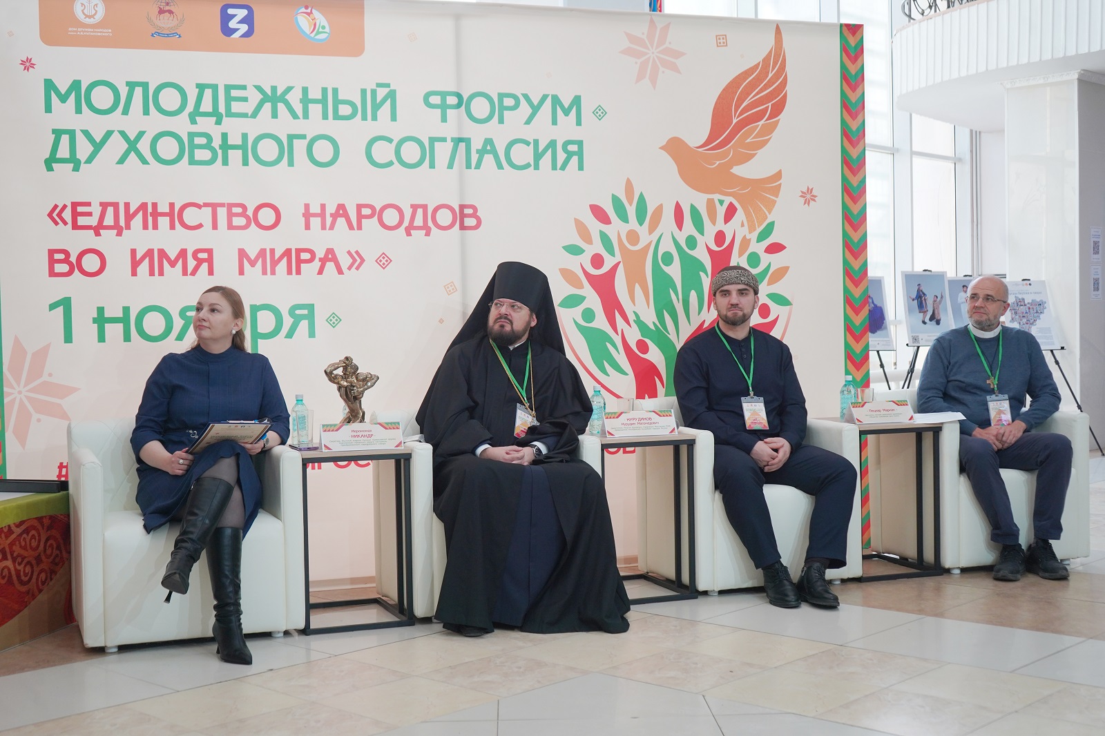 Иеромонах Никандр рассказал личную историю — как обычное общение со священниками вдохновило его на путь служения. Его рассказ дополнил фильм о святителе Иннокентии, чья просветительская деятельность стала мостом между культурами. Нурудин Нурудинов, заместитель муфтия, заявил: «Главное — быть духовно развитым человеком, независимо от религии». Он призвал молодежь активно работать над укреплением и наполнением своей духовности. Мариан Пециар из католической общины провел философский эксперимент, объяснив разницу между общественными «ценностями» и глубоко личными «добродетелями», которые становятся частью характера.