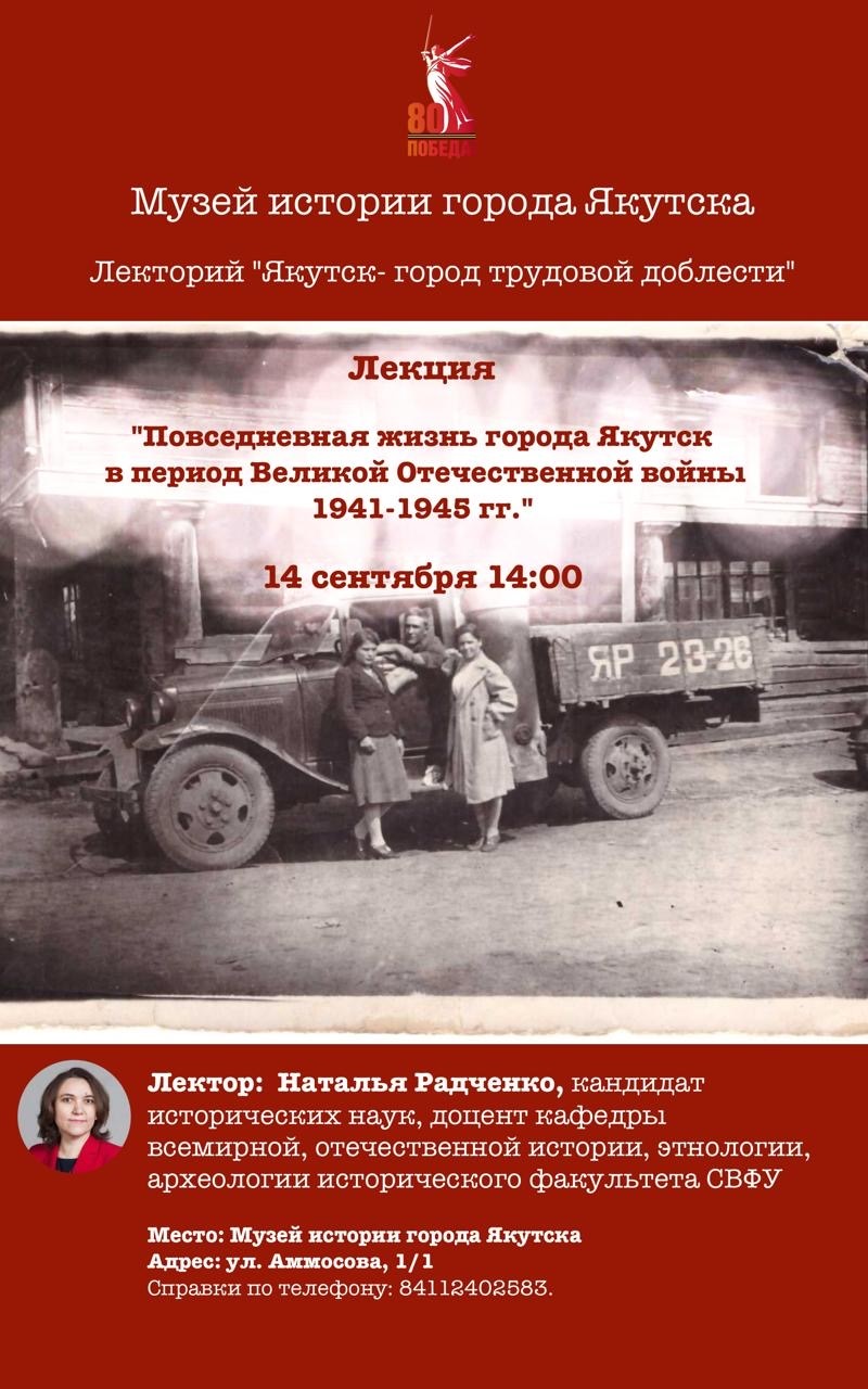 Лекция «Повседневная жизнь города Якутска в период Великой Отечественной войны (1941-1945 гг.)» — часть музейного лектория «Якутск – город трудовой доблести», посвященной 80-летию