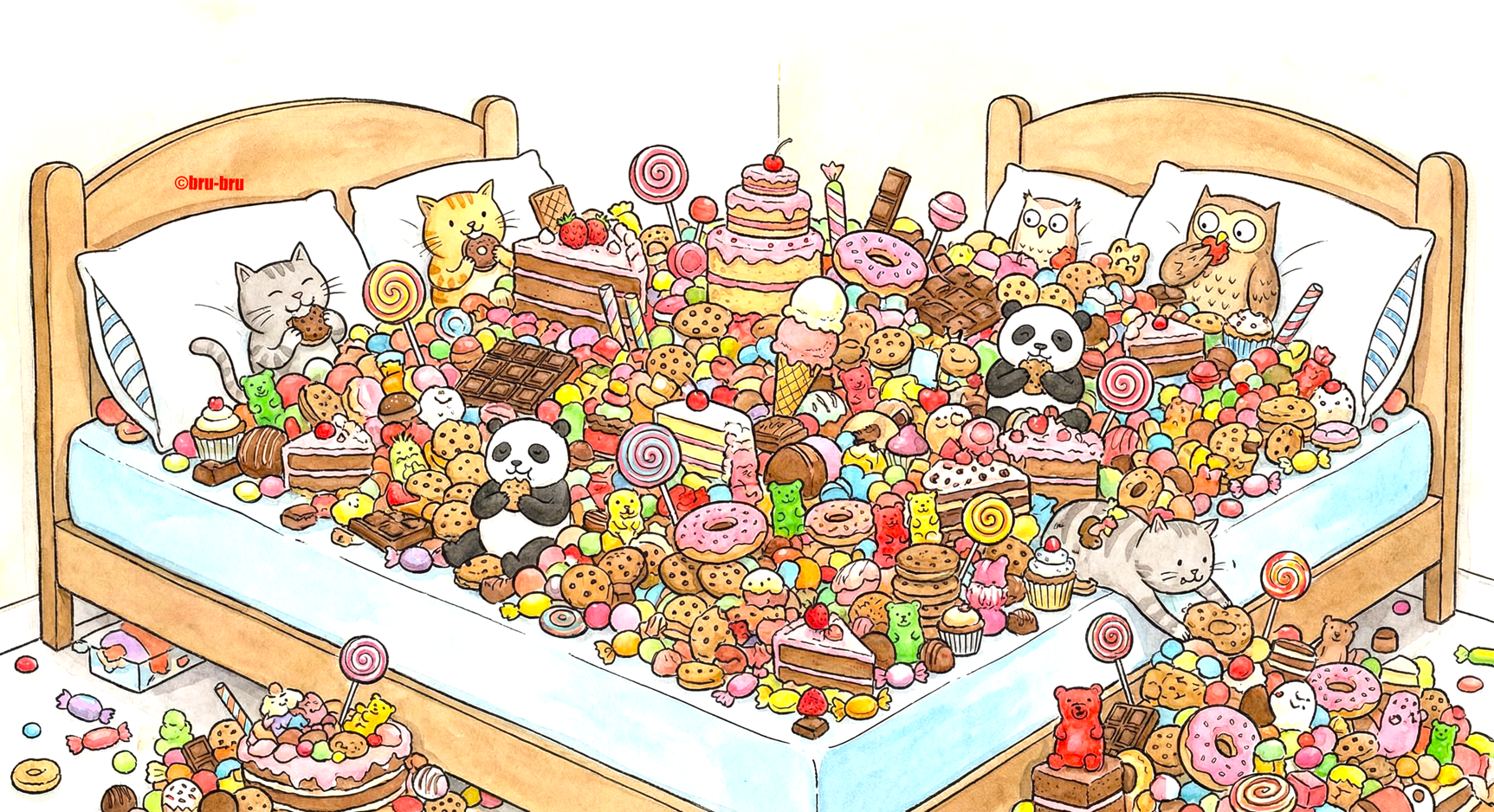 Это буквально мы в новогодние выходные, с головой зарытые в разные сладости! Ваша задача — найти все кексы на картинке. Справитесь за 10 секунд? Время пошло!