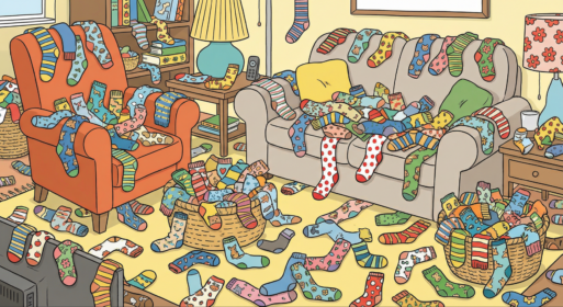 В комнате царит настоящий «носочный хаос»! Ваша задача — обнаружить сердечко! Справитесь за 10 секунд? Время пошло.