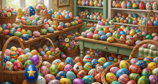 Перед нами множество раскрашенных нарядных яиц. Но одно яичко осталось нераскрашенным! Сможете его найти за 10 секунд?
