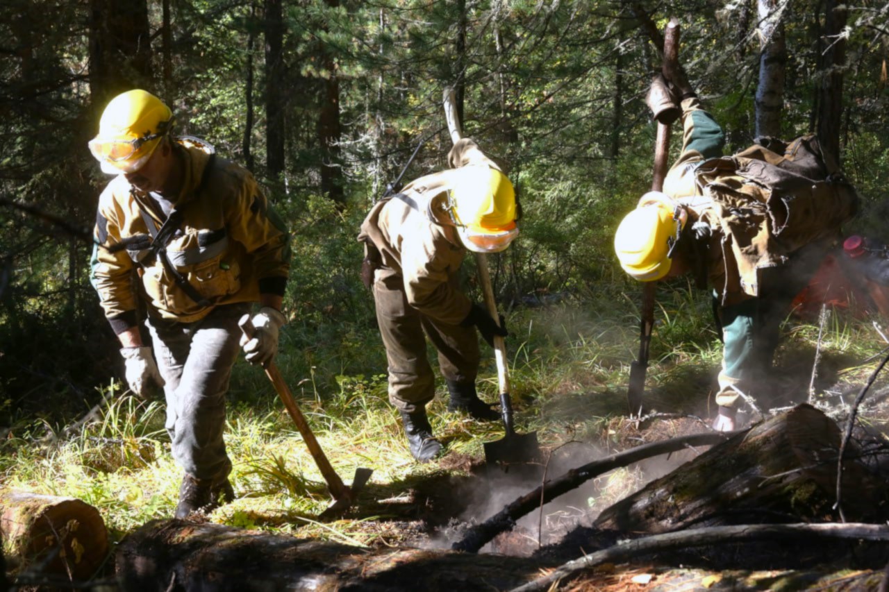 Тушению пожаров мешает ветер со сменой направлений. Борьба с огнем осложнена ландшафтными особенностями местности – заболоченностью, каменистыми россыпями, крутыми склонами.