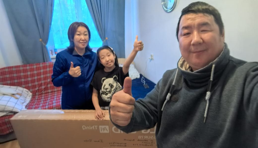 Борец Владислав Левчиков подарил телевизор семье Мандаровых