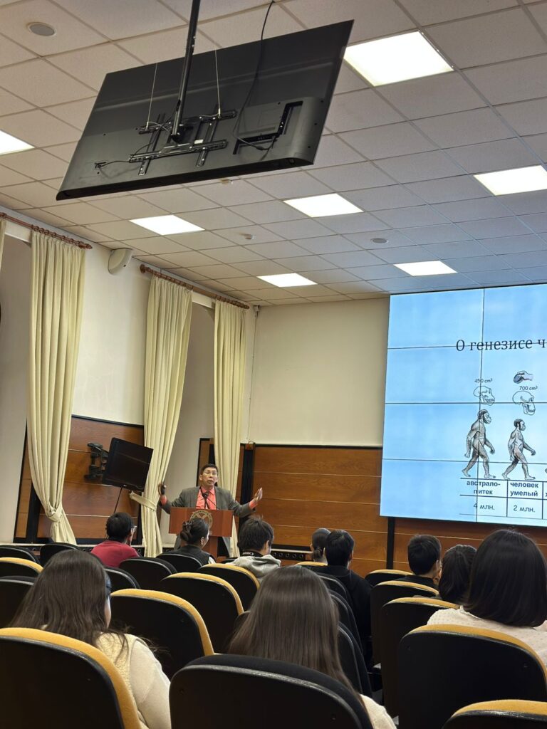 В выступлении ведущего научного сотрудника отдела энциклопедистики Алексея Пудова «Наука как трамплин к успешной карьере: от студенческой скамьи до инноваций», исследователь кратко рассказал о становлении научного способа познания мира, о тех «культурных мутациях» в сознании человека, его условиях и допущениях о мире, которые дали возможность мощному преобразующему эффекту современной науки, которая в принципе совсем молодая, – всего то 400 лет, по сравнению с предыдущей историей повседневной и мифо-религиозной историей познания мира, которой по крайней мере 40 000 лет с момента появления на планете Homo Sapiens – человека разумного.