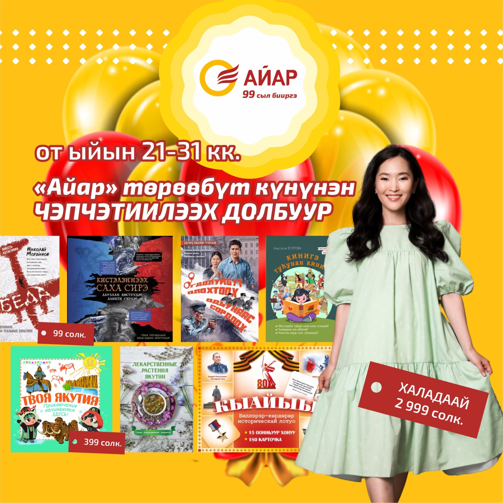 До 31 июля в магазинах «Айар» проходит распродажа, в рамках которой участвует около 100 товаров! Книги, сувениры и уникальные предметы по цене 99, 399 и 999 рублей, а также эксклюзивный стилизованный халадаай за 2999 рублей!