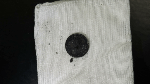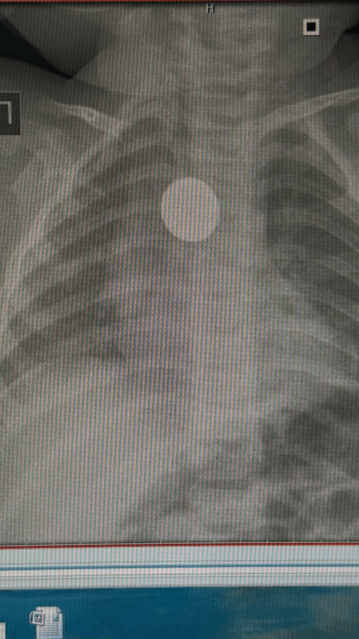 Монету в пищеводе годовалой девочки обнаружили случайно. Ребенка беспокоил кашель на протяжении месяца, врачи назначили рентген легких.
