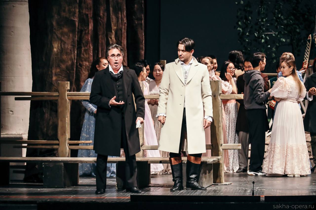 Роль Онегина исполняет Григорий ЧЕРНЕЦОВ, наш любимый земляк, солист Мариинского театра, заслуженный артист Республики Саха (Якутия) и Санкт-Петербурга. В роли Ленского — Алексей ТАТАРИНЦЕВ, приглашенный солист Большого театра, заслуженный артист Республики Северная Осетия – Алания, лауреат Международного конкурса теноров памяти Лучано Паваротти, Национальной оперной премии «Онегин» и Национальной театральной премии «Золотая маска».