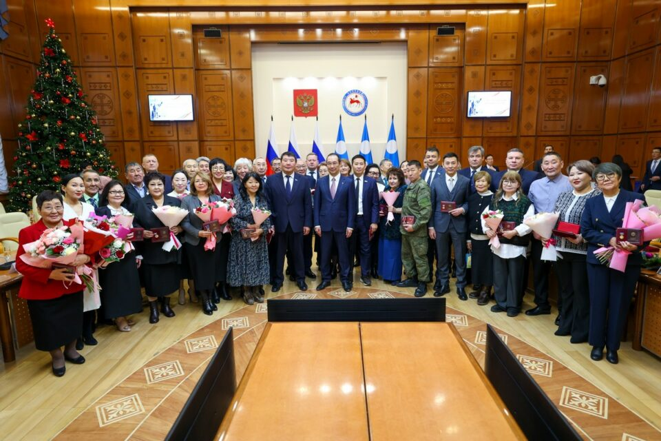 Глава республики Айсен Николаев в преддверии Нового года традиционно вручил государственные награды РФ и Якутии более чем 40 отличившимся якутянам. Награды получили представители различных сфер, включая образование, медицину, строительство, культуру, науку и социальную сферу.