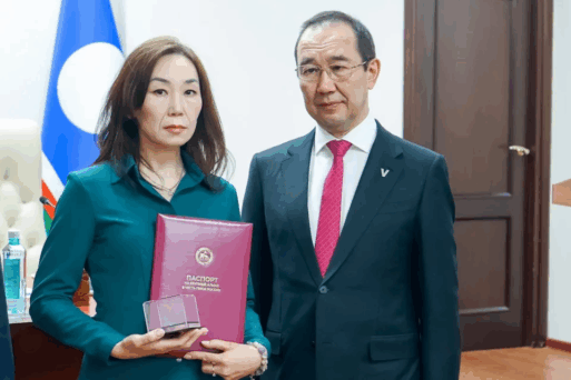 Глава Якутии вручил вдове Героя России Дмитрия Егорова копию именного алмаза