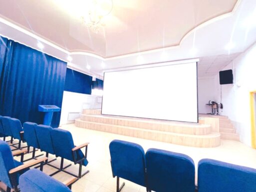 Зал оборудован проектором с защитой контента, системами контроля посещения и управления. Сотрудники школы получили инструктаж и обучение работе с системой.