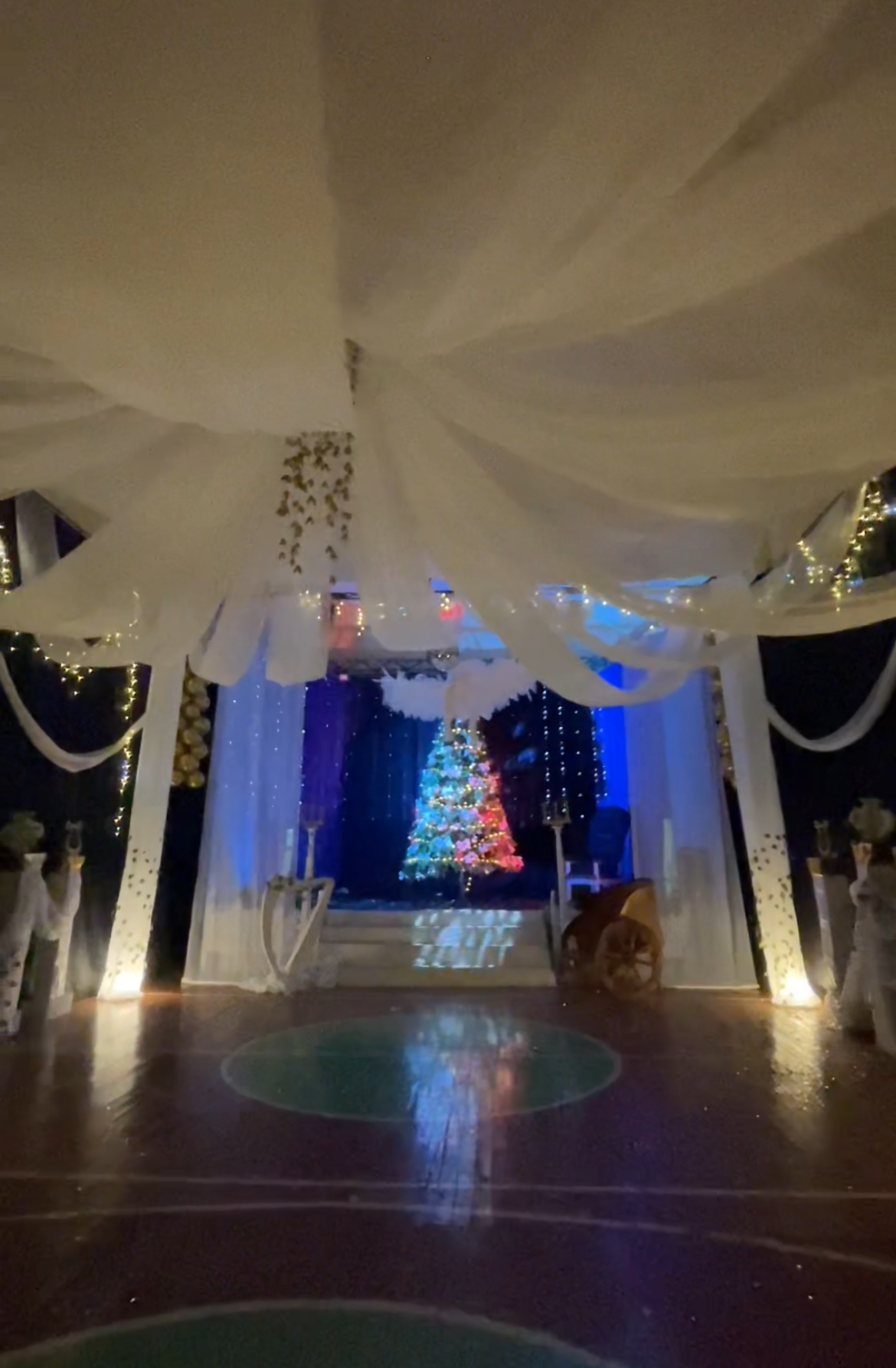 Оформление зала было поистине божественным. Пяти метровые колонны, из легкой ткани, взмывали к небесам. Потолок украшал величественный купол из 100 метров ткани, создавая иллюзию открытого неба Эллады. Мягкий свет гирлянд переплетался с искусными лианами, а в уютном уголке расположился тир для стрельбы из лука, где каждый мог почувствовать себя Аполлоном или Артемидой.