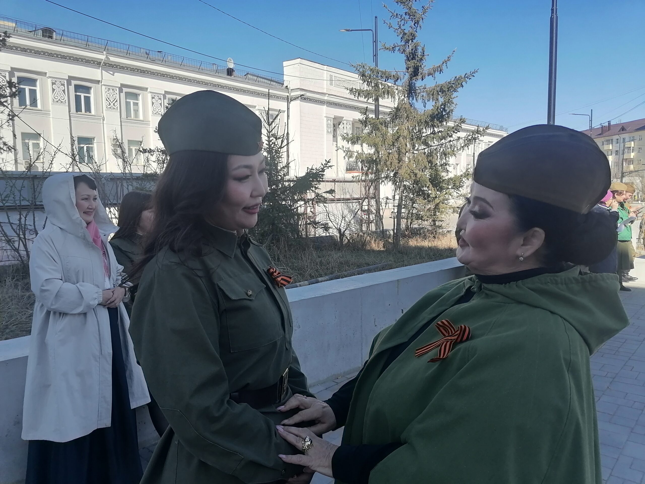Душевный Николай Попов вместе с потрясающим мужским хором театра на «Браво» спел любимую народом «Смуглянку-молдаванку», а Айталина Адамова, Альбина Борисова, Мария Михайлова, Саргылана Павлова, Юлия Караченцева и Анегина Дьяконова вместе с хором — старую добрую «Катюшу».