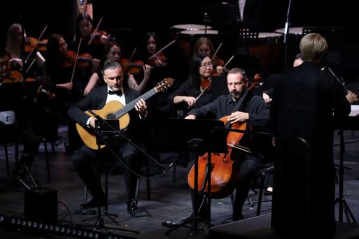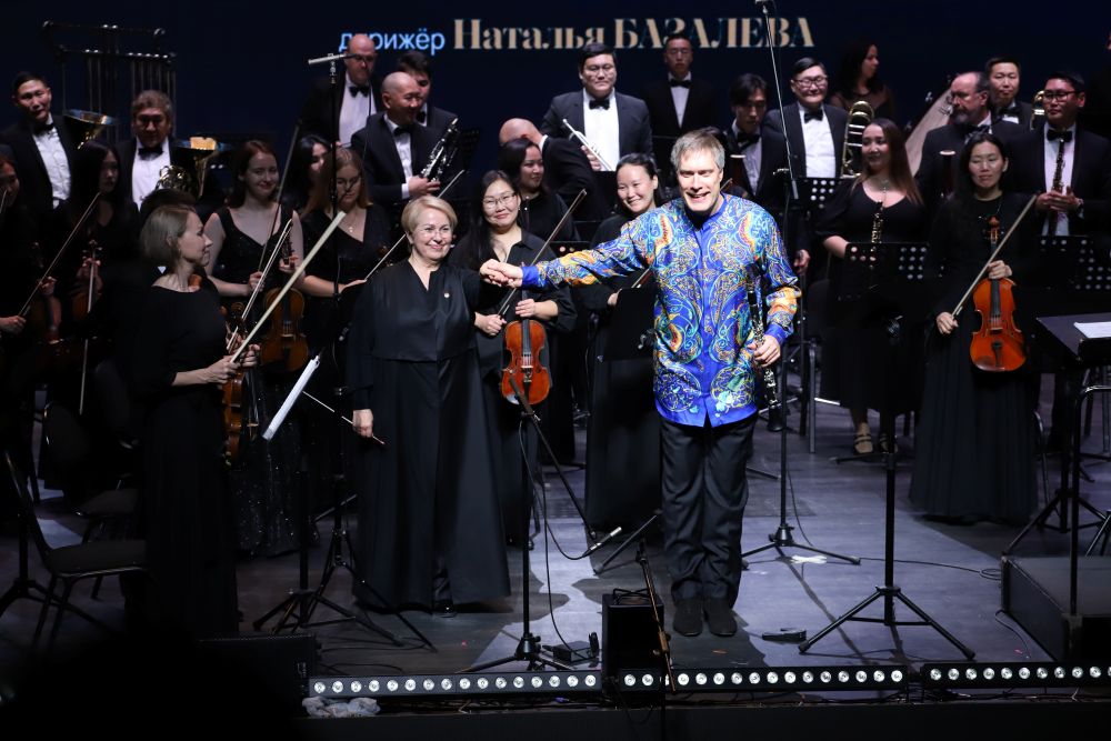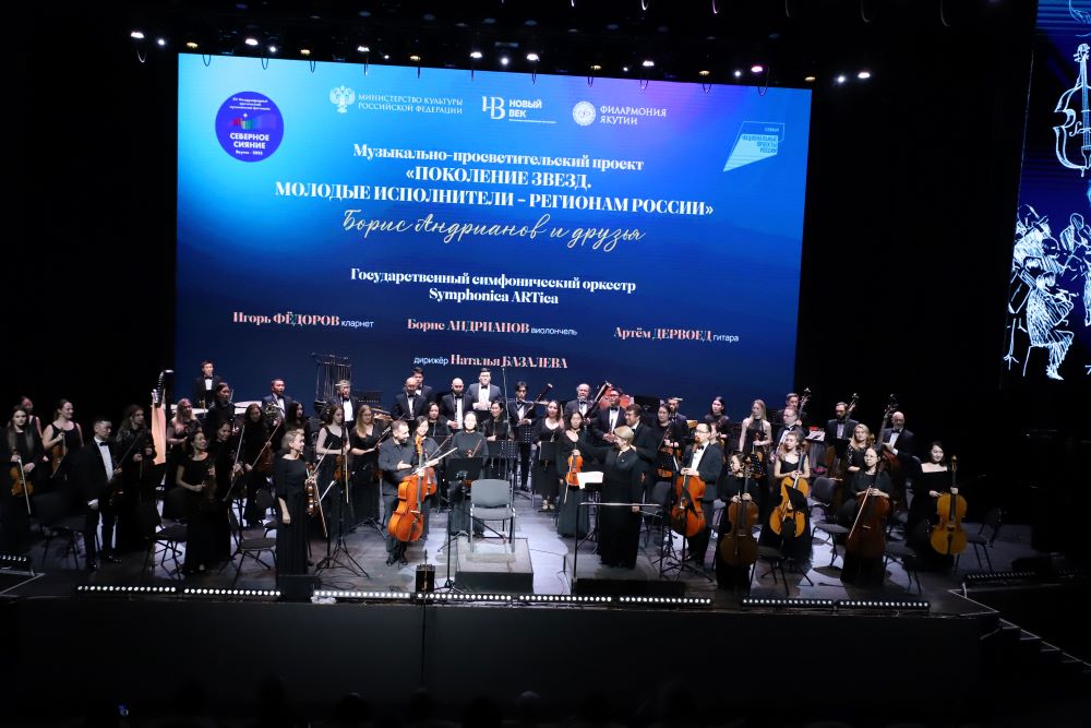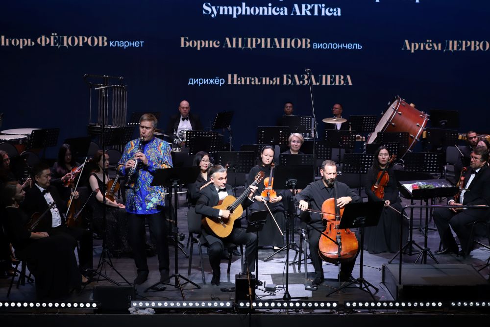 В этот вечер со сцены Центра культуры и современного искусства им. Ю.А. Гагарина звучала музыка в исполнении Государственного симфонического оркестра Symphonica ARTica под управлением заслуженного деятеля искусств РС(Я) Натальи Базалевой. Партии солистов представили признанные мастера-виртуозы: Борис Андрианов (виолончель), Игорь Фёдоров (кларнет) и Артём Дервоед (гитара).