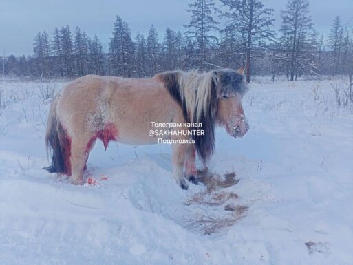Стая волков напала на лошадь в Верхоянском районе Якутии. Охотники посчитали по следам — серых хищников было 6. Вожак сражался храбро и отстоял свой табун. Но получил серьезные раны.