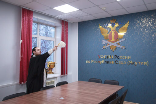 В эти дни помощник начальника УФСИН по организации работы с верующими иерей Иаков Бояркин и помощник начальника следственного изолятора по работе с верующими иерей Корнилий Рахманин совершили в УФСИН молебен на начало всякого доброго дела, а затем окропили помещения святой водой.