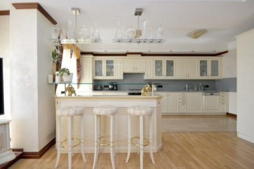 Дизайнерский ремонт подчеркивает статус недвижимости: здесь использованы премиальные материалы — мрамор и дерево, установлена техника Miele, итальянская мебель и элитная французская сантехника.