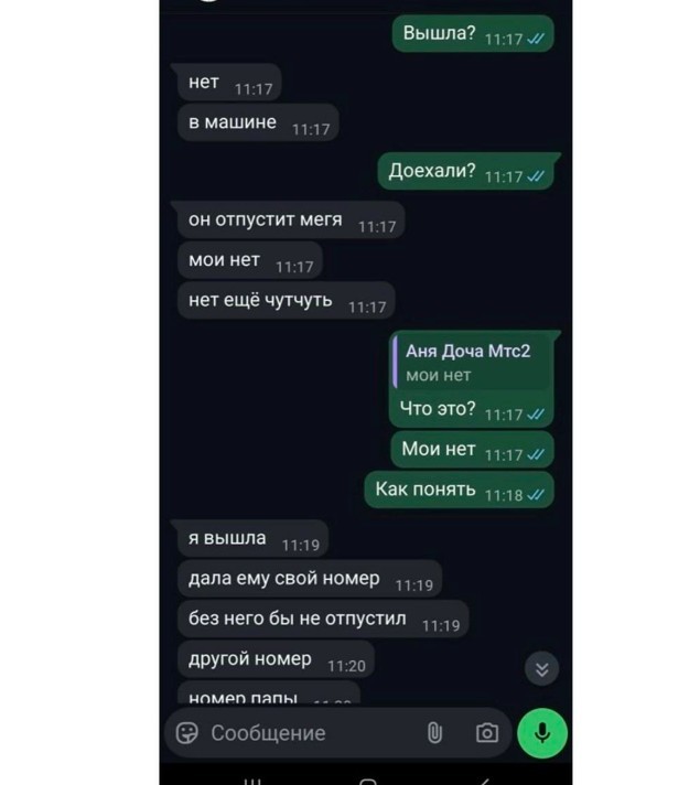 Ей пришлось дать номер (правда, недействительный), потому что сильно испугалась. При этом требовал отдать ему свой телефон, чтобы проверить, действительно ли она надиктовала ему реальный свой номер.