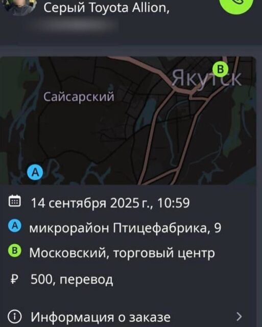 По словам матери девушки, она вызвала такси дочке — студентке 1 курса университета со своего аккаунта в 11.00 с птицефабрики до центра Якутска. Заказ взял за 500р (изначально просил 700р) водитель Драйвера, выходец из Средней Азии, некий И., судя по фото лет 35-40.