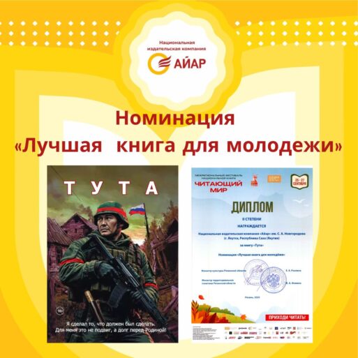 1.    «Ыччакка анаммыт» диэн номинацияҕа Арассыыйа Дьоруойа Андрей ГРИГОРЬЕВ олоҕуттан олоҕуран суруллубут «Тута» комикс-кинигэбит статуэткалаах иккис миэстэни ылары ситистэ!