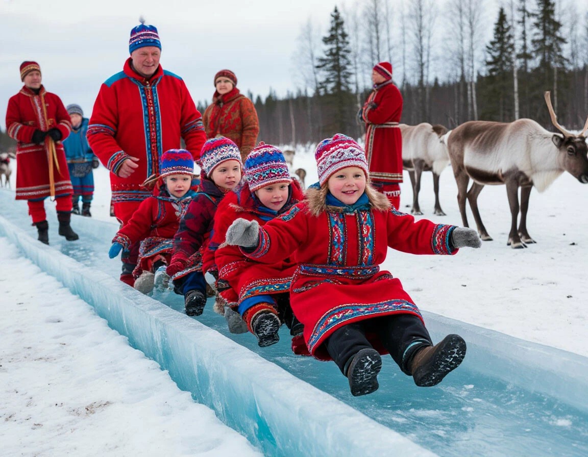 Лица детей светятся радостью, когда они распевают народные песенки на языке Саами, хлопая в ладоши в такт мелодии. Подобные занятия играют ключевую роль в сохранении и передаче языка и культурного наследия Саами, объясняет Тиина Лехмуслетти, учительница группы, которая мягко направляет детей и поощряет их участие.