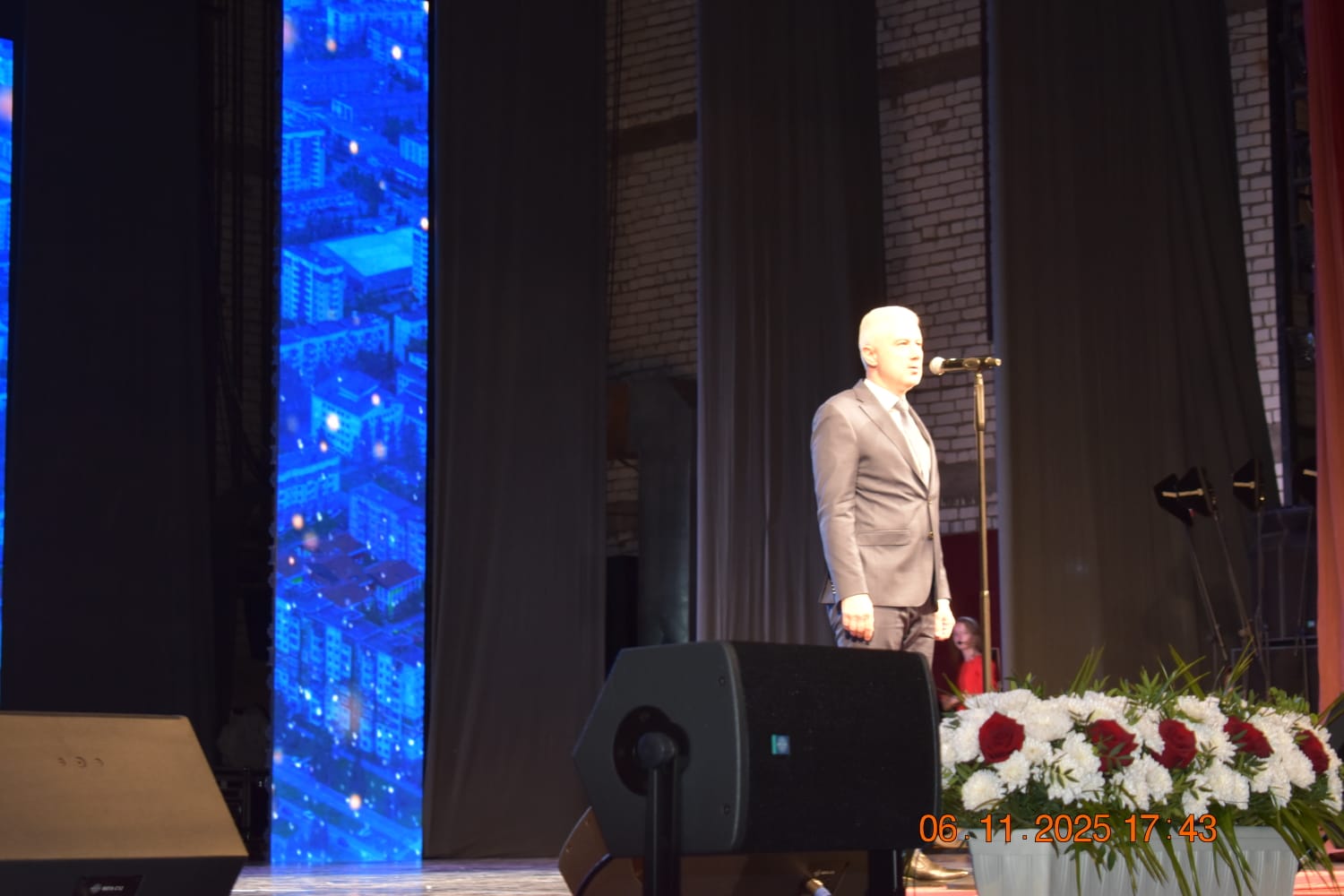 «Уважаемые первостроители! Для меня большая честь находиться среди вас, в этом прекрасном зале, в день нашего общего большого праздника! 6 ноября 1975 года, с подписанием Указа о присвоении рабочему поселку статуса города республиканского подчинения, началась современная история Нерюнгри. Горжусь тем, что мои родители — тоже первостроители! Они приехали строить наш город в 1978 году. Мама Галина Николаевна – теперь она Почетный строитель РФ, трудилась мастером СУ-7. Ее первыми объектами в нашем городе стали школа N3 и столовая N10. Папа Андрей Константинович работал бригадиром СУ-17 и в домостроительном комбинате. Дорогие друзья! Разрешите выразить вам глубокую искреннюю благодарность за ваш героический труд в тяжелейших условиях, за строительство города Нерюнгри, поселков Серебряный Бор, Беркакит, Золотинка, за все возведенные вами объекты Южно-Якутского территориально-производственного комплекса. Хочу пожелать вам крепкого здоровья и долголетия, счастья и семейного благополучия, неиссякаемой жизненной энергии, внимания и заботы близких!», — приветствовал участников торжественного мероприятия Александр Кошуков.