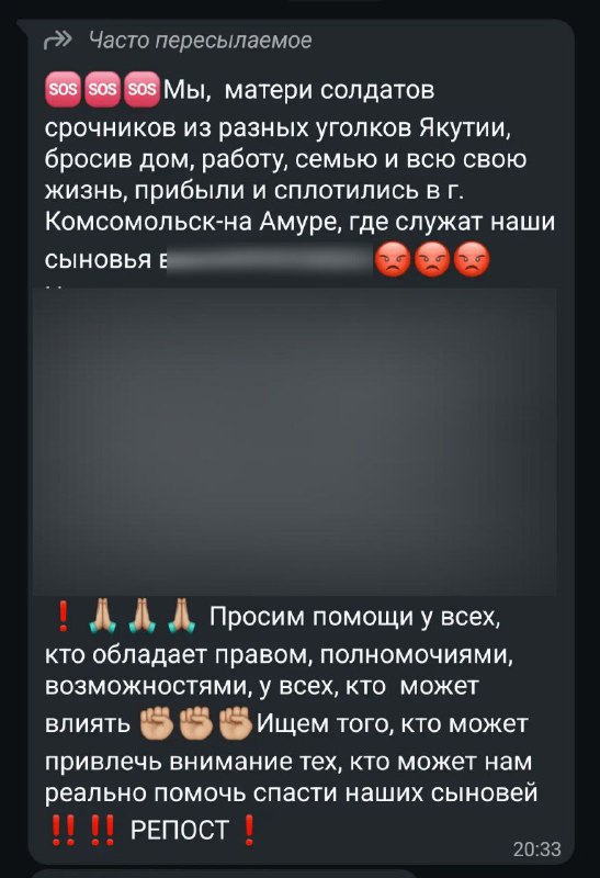 Мне в личные сообщения пришли обращения от матерей солдат-срочников из Якутии.