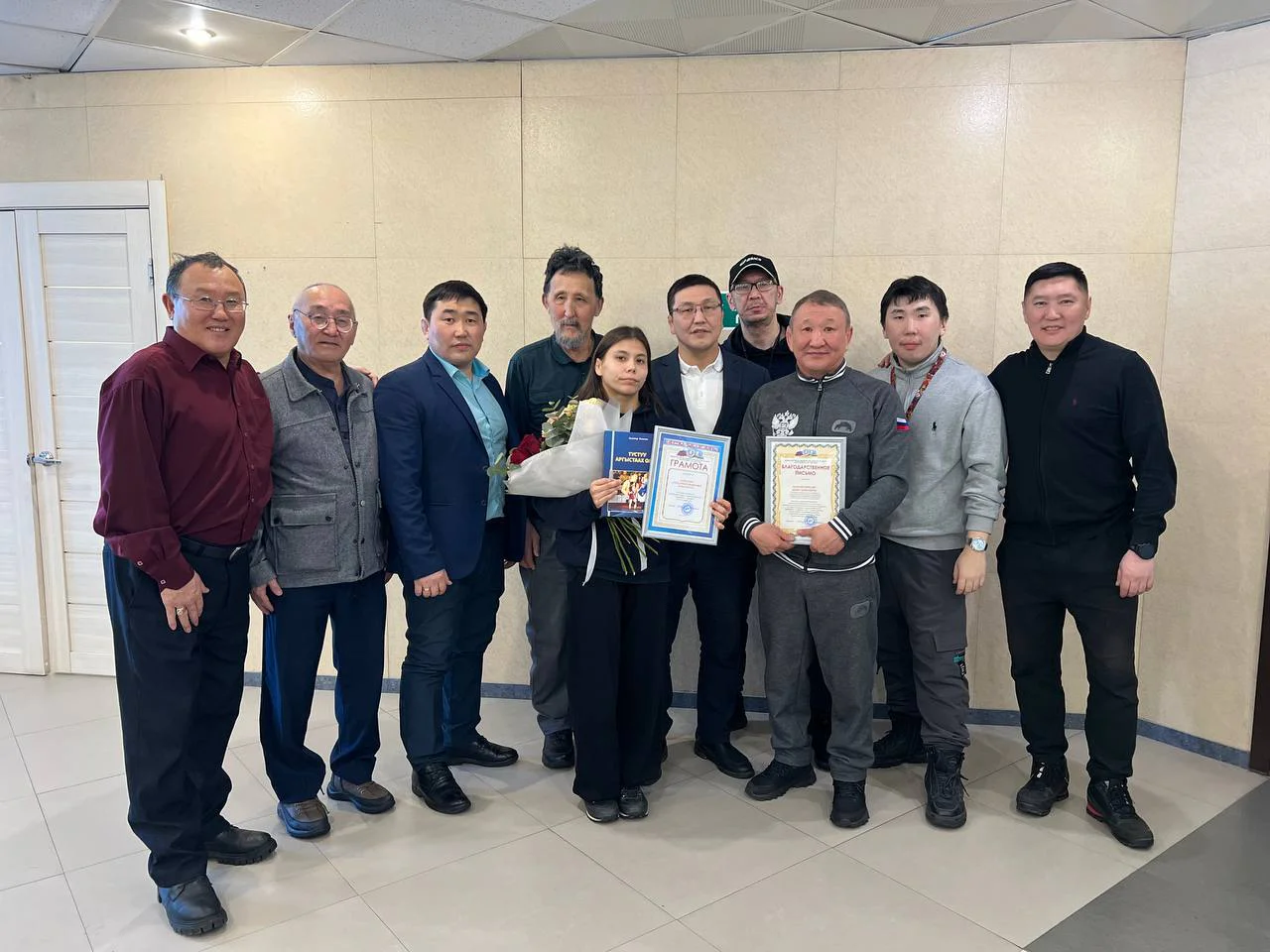 Министр мастерски использовал недовольство якутян в соцсетях, и пальчиком показал на виновных – ЦСП «Триумф». А чтоб подобные безобразия больше не повторялись, на чествовании серебряной призерки Копыловой министр Спиридонов представил собравшимся и.о. директора ЦСП «Триумф» Юрия НИКИФОРОВА. До сих пор он работал руководителем спорткомитета – заместителем главы Хангаласского улуса, откуда уволился для вступления на новую должность в престижном месте в столице. К слову сказать, Юрий Юрьевич – родной брат депутата Ил Тумэна, руководителя фракции «Новых людей», основателя бренда Сахачай Нюргуяны ЗАМОРЩИКОВОЙ. И.о. директора центра «Триумф» Юрий Никифоров на общем фото – третий слева, в синем пиджаке.