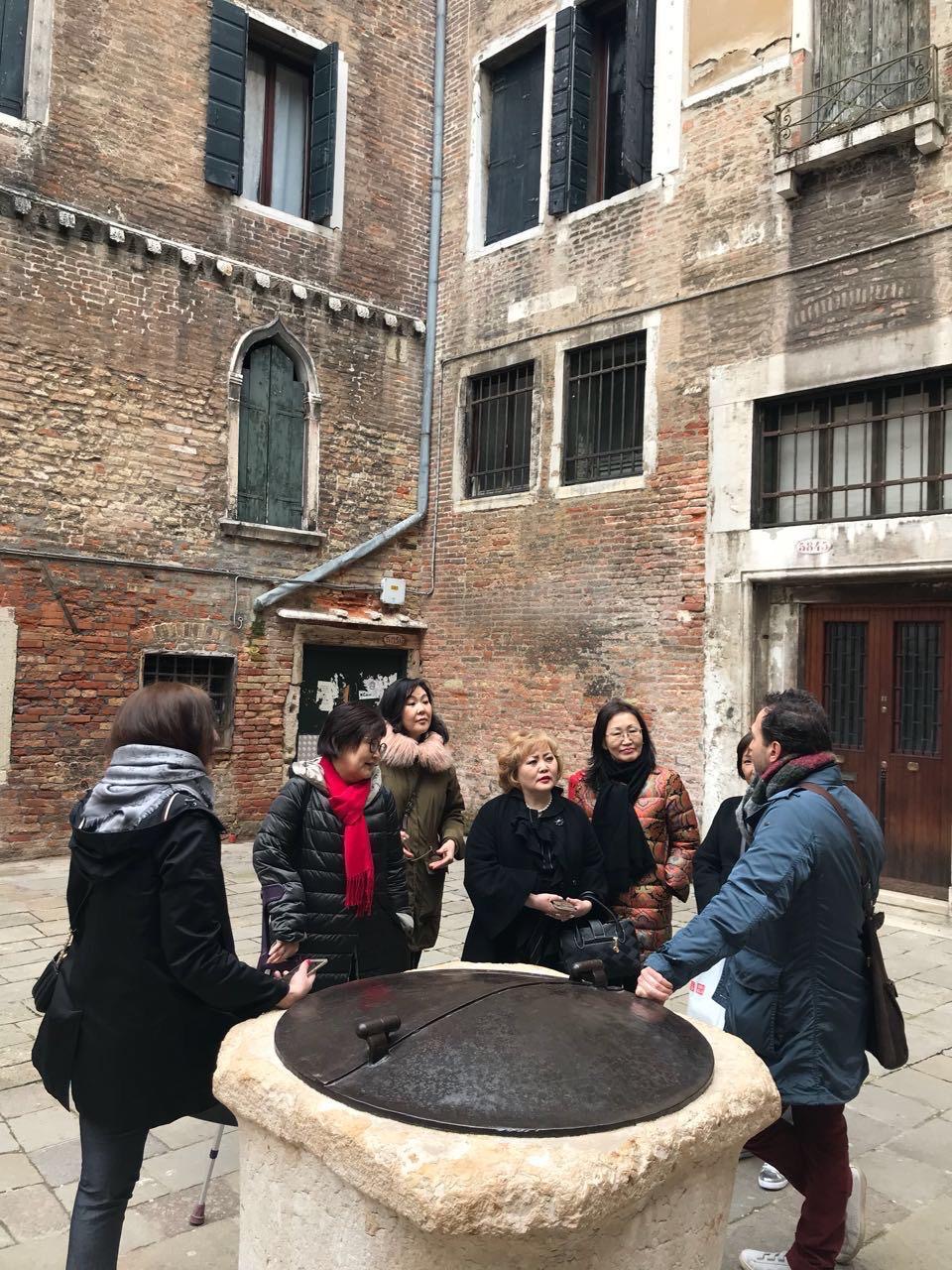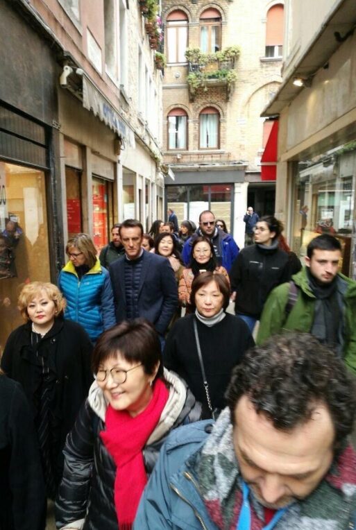 Кстати, чуть не забыла же! В Венеции мы попали в наводнение марта 2018 года! Представляете? Это был стресс, но что удивительно — мы под впечатлением от поездки как-то очень легко справились с этим нестандартным событием. Нас особо не терзал страх, неизведанное как-то не очень нас кошмарило, я бы сказала. Мы скорее это воспринимали как некие условия игры. А наводнение то было нешуточное: со второго дня нашего пребывания, аккурат после юбилейного торжества, начались беспрерывные дожди, через день мы уже передвигались от здания к зданию в специальных бахиллах. Это видимо было генеральной репетицией к более серьезному наводнению, случившемуся в Венеции в октябре того же 2018 года.