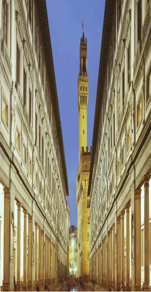 ** Галерея Уффици — старейшая и самая известная галерея Флоренции, В ней выставлено более 2 000 произведений искусства, а число посетителей превышает 2 000 000 человек. Весьма скупо, не правда ли?