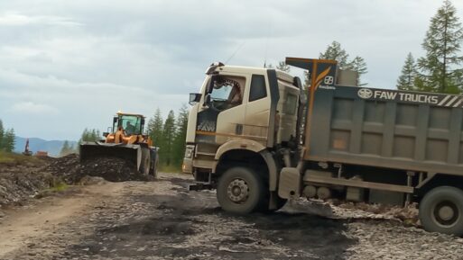 Затем укладка земполотна, дорожной одежды из ПГС мелкой фракции, ремонт труб, устройство канав и откосов. Работы на пятикилометровом участке этого года начались в мае и завершаются в сентябре.