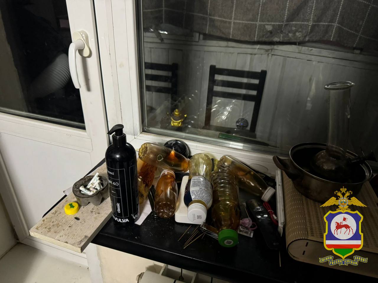 При личном досмотре молодых людей в карманах их верхней одежды было обнаружено и изъято 26 свертков с веществом тёмного цвета со специфическим запахом. В ходе дальнейших оперативно-розыскных мероприятий полицейские установили координаты тайников под жилыми домами, где сбытчики спрятали 10 аналогичных свертков, замаскировав их крышками от пластиковых бутылок, сообщает пресс-служба МВД по Республике Саха (Якутия).