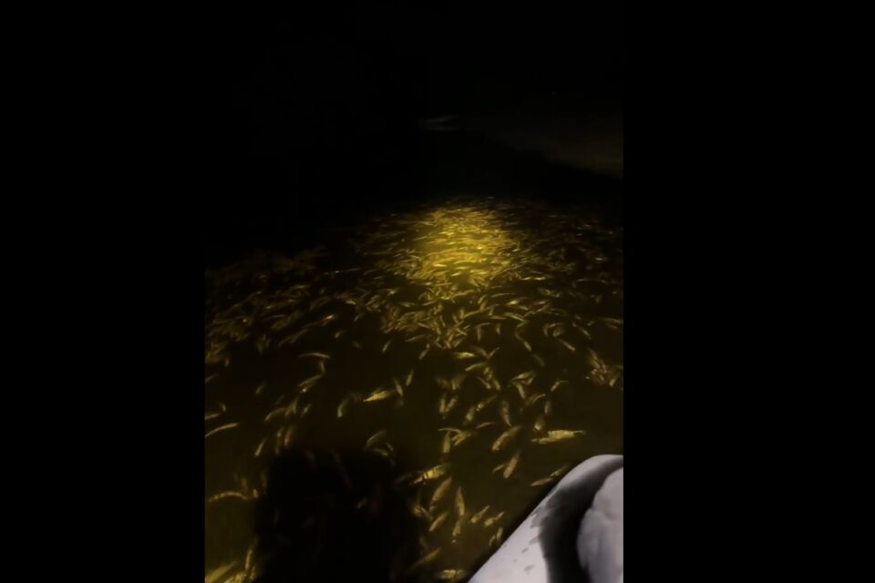 На кадрах распространившегося в соцсетях видео запечатлены сотни мертвых рыб