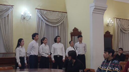 После раскрытия вопросов, касающихся состояния современной культуры — ее основных актуальных аспектов и проблем — студенты кафедры театрального искусства Арктического государственного института культуры и искусств выступили с художественным чтением композиций на стихи якутских классиков (художественный руководитель: профессор Андрей Борисов, педагог по сценической речи, доцент Александра Мучина).