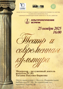 25 ноября 2025 года в Историческом зале Национальной библиотеки Республики Саха (Якутия) в рамках «Культурологических встреч» — авторском проекте кандидата искусствоведения Татьяны Павловой-Борисовой — прошла студенческая дискуссионная площадка «Театр и современная культура».