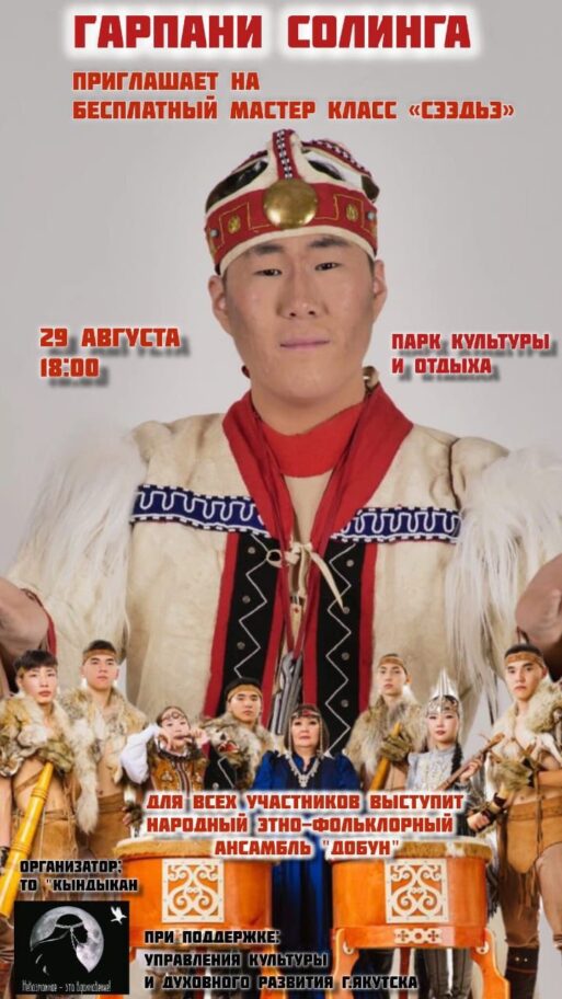 Сегодня в Якутске состоится бесплатный мастер-класс по традиционному танцу «Сээдьэ» от молодого этноисполнителя Гарпани Солинга