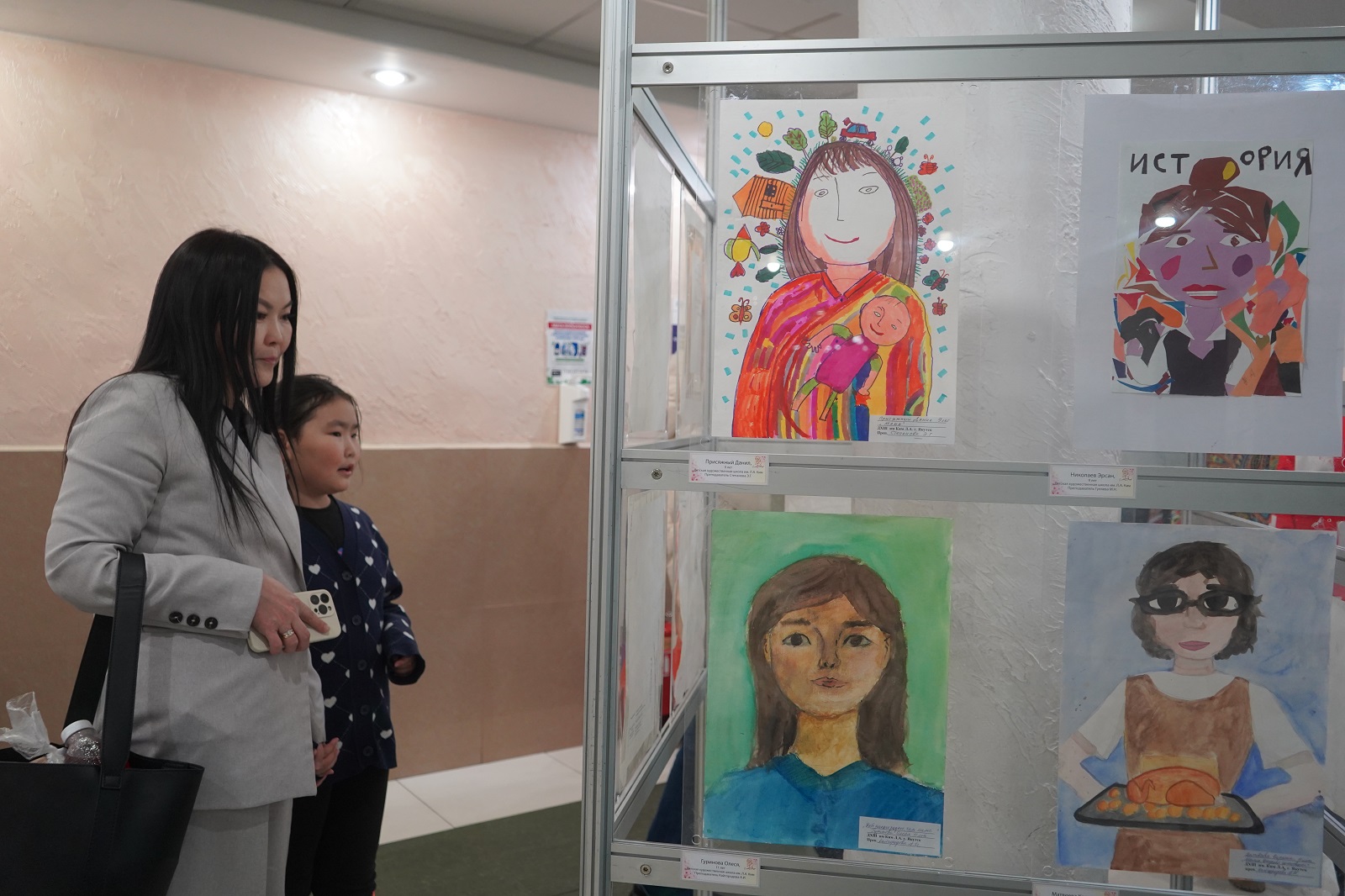 ⁣В работах чувствуется удивительная глубина. Дети запечатлели трогательные моменты: вот мамины руки поправляют школьную форму,помогают собраться в школу. На некоторых рисунках мамы изображены в национальной одежде, что подчеркивает межнациональную идею выставки и создает собирательный образ Матери-Якутии. Эти творения — настоящая ода материнству.
