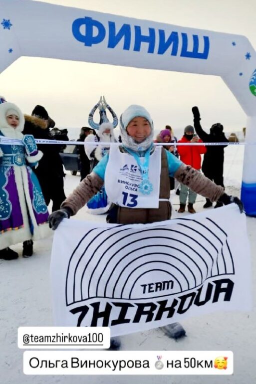 Стоит отметить, до того, как пробежать «холодный» ультрамарафон в родном улусе, любитель бега Ольга Винокурова приняла участие в Казанском марафоне, в прошлом году она участвовала в Международном сверхмарафоне в ЮАР (The Comrades Marathon) на дистанции 92 км, далее у нее был Московский марафон.Она успешно приняла участие в ультрамарафоне на двух континентах в Африке и Евразии, еще она альпинистка, мать и успешная предпринимательница.