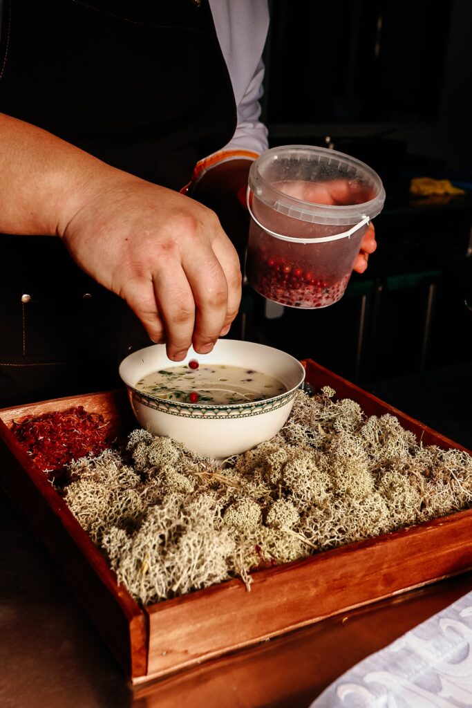 Каждое блюдо становится частью большого повествования, раскрывающего жизнь, обычаи и быт коренных народов Якутии: якутов, русских, эвенов, эвенков, чукчей, юкагиров и долганов. Меню отражает глубокий симбиоз разных этногрупп, живущих бок о бок многие века. Авторское меню демонстрирует богатство вкусовых сочетаний и удивительную гармонию вкусов, характерных именно для северного края.