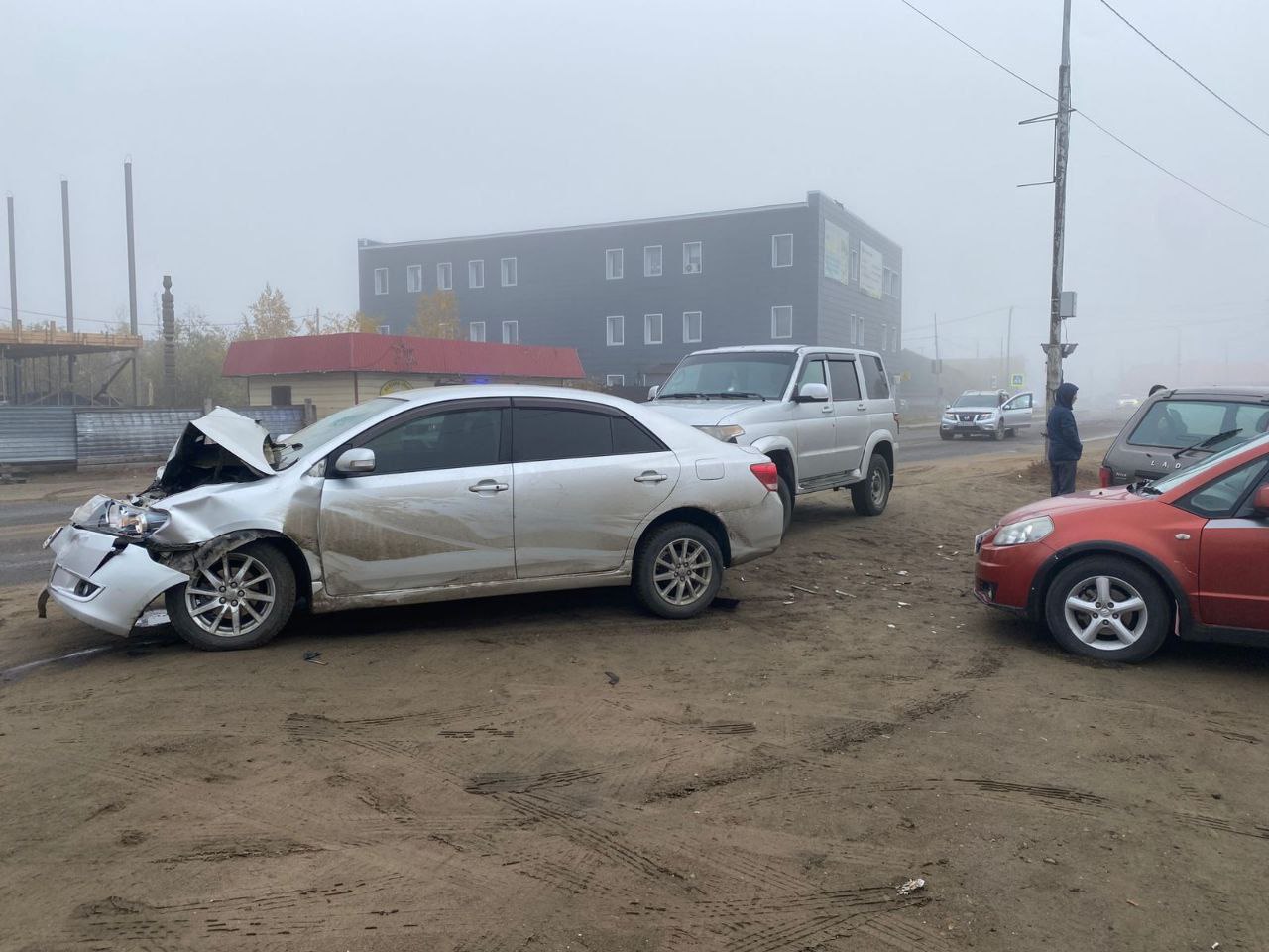 В ходе проверки предварительно установлено, что в г.Нюрбе 28-летний водитель управляя автомобилем марки «Тойота Аллион», следуя со стороны ул. Ст. Васильева в сторону ул. Горького, проехав на запрещающий сигнал светофора совершил столкновение с впереди едущим автомобилем «Ниссан Террано», после чего совершил наезд на пешехода – женщину, которая находилась на обочине дороги слева. Далее водитель Аллион совершил столкновение с припаркованными машинами марки «Лада» и «Сузуки СХ4». В результате происшествия пешеход — женщина 1996 г.р. с множественными травмами госпитализирована в медучреждение г.Нюрба.
