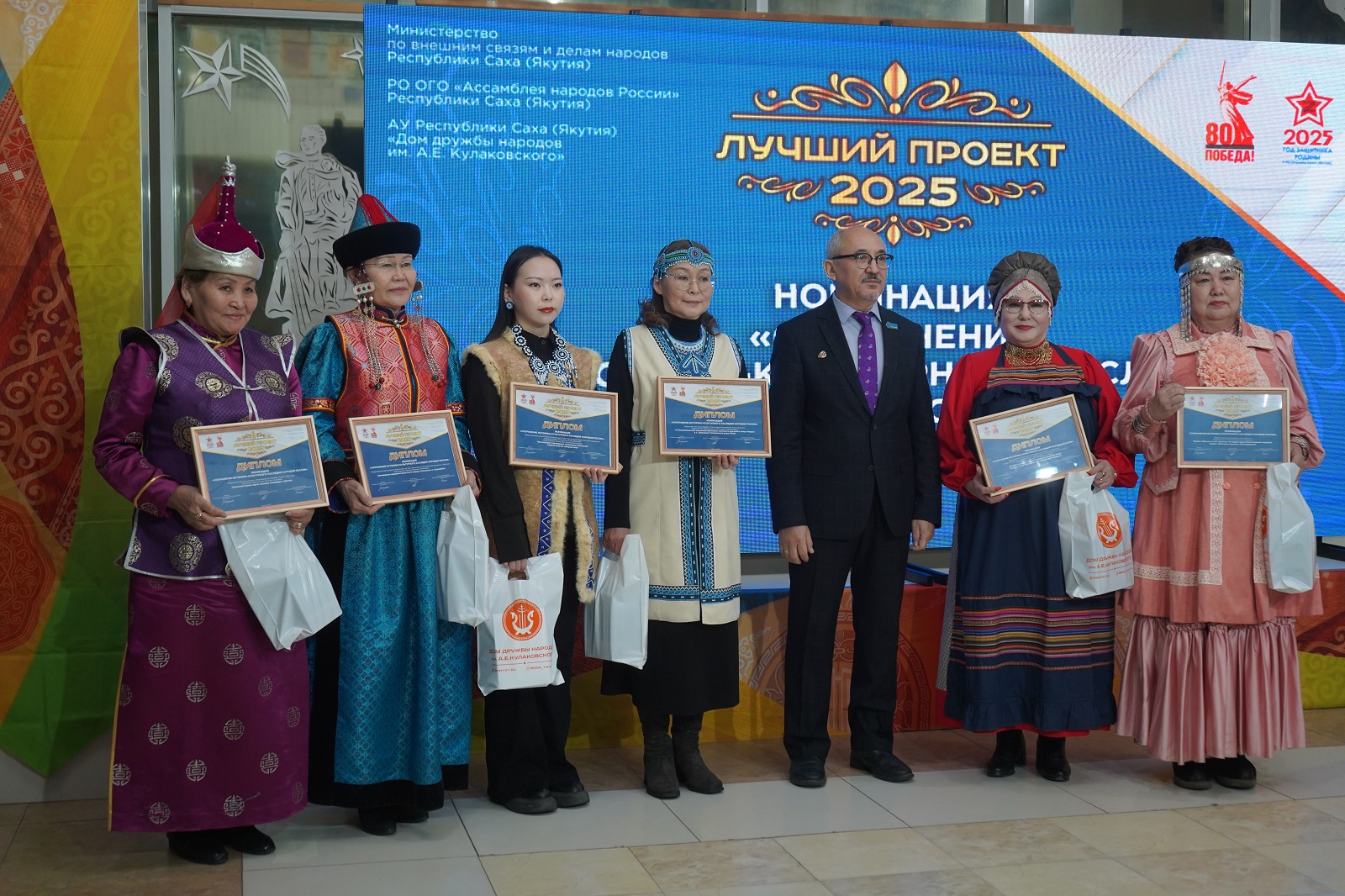 Самой многочисленной стала номинация «Сохранение историко-культурного наследия народов России», в которой дипломы получили: Якутская община «Саха эйгэтэ», Организация русскоустьинцев, Союз эвенов РС(Я), Молодежный Совет Ассоциации КМНС РС(Я), Бурятская местная национально-культурная автономия в городе Якутске, национальная община «Тыва» города Якутска.