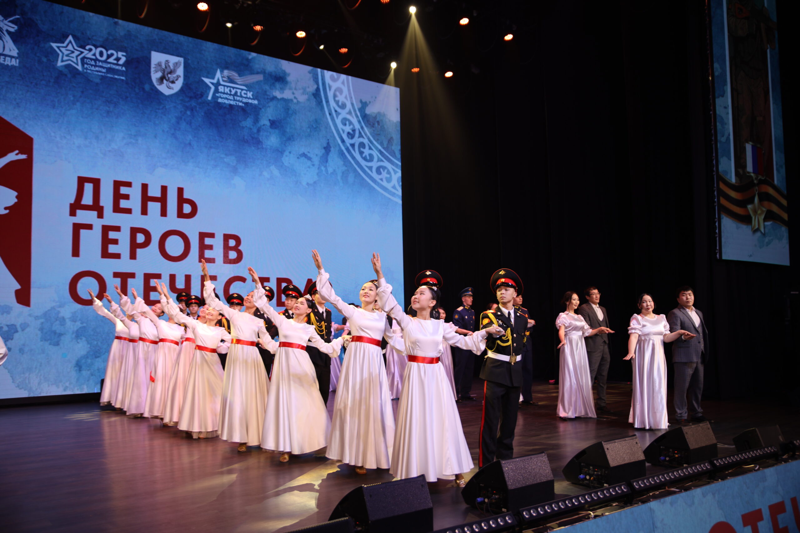 Главными гостями торжественного вечера, посвященного Дню Героев Отечества и знаменующего завершение годовой программы мероприятий к 80-летию Победы в Великой Отечественной войне, стали ветеран Великой Отечественной войны, Почетный гражданин республики Наум Трифонович Слепцов, Герой России Алексей Рафаэлович Петров и участники специальной военной операции.