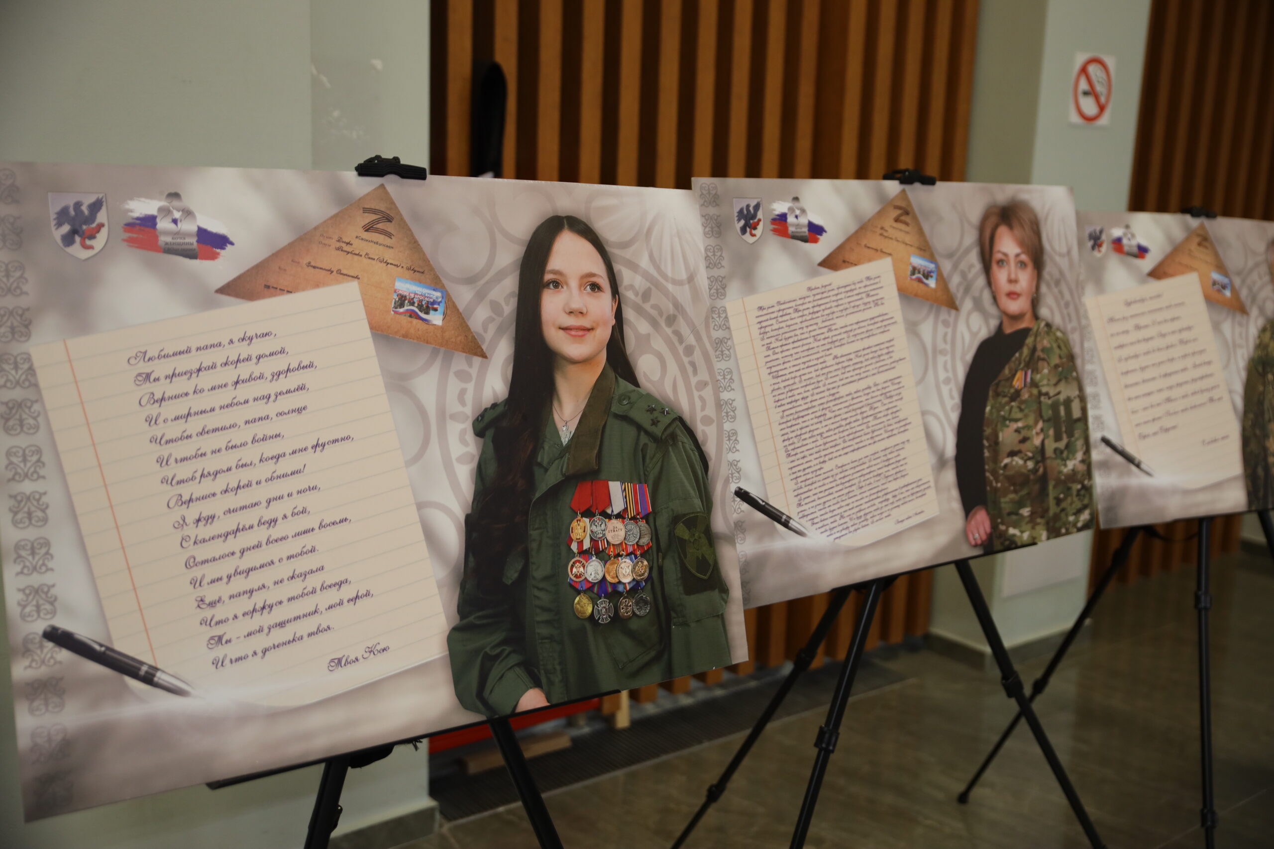 Перед началом концерта гости смогли посетить несколько тематических выставок: «Герои-земляки», «Жены СВОих Героев», «Искусство жизни и борьбы» ветерана СВО Вячеслава Козловского и экспозицию «Якутск – город трудовой доблести».
