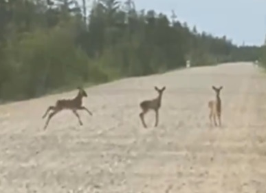 Семейка косуль с тремя детенышами была замечена на трассе в Якутии. Малыши стремглав ускакали в чащу за своей матерью, сообщает тгк @sakhahunter