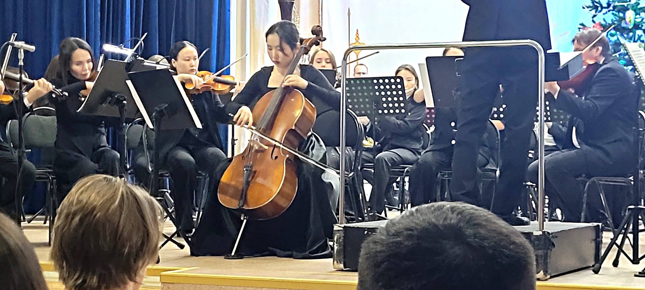 Вот и сейчас он явился катализатором концертной исполнительской мысли, когда звучал Концерт 1 части композитора Эдуарда Лало, где солировала виолончелистка Сандаара СИВЦЕВА (11 класс, 2 курс СПО, ВШМ РС(Я) кл. преп. профессора Кошелевой Ольги Григорьевны). Игра солистки отличилась выразительной приподнятостью исполнения, полнозвучной красотой инструмента. Чувствуется, что с годами Сандаара расширит свои горизонты, где игра станет ещё глубже, содержательнее.
