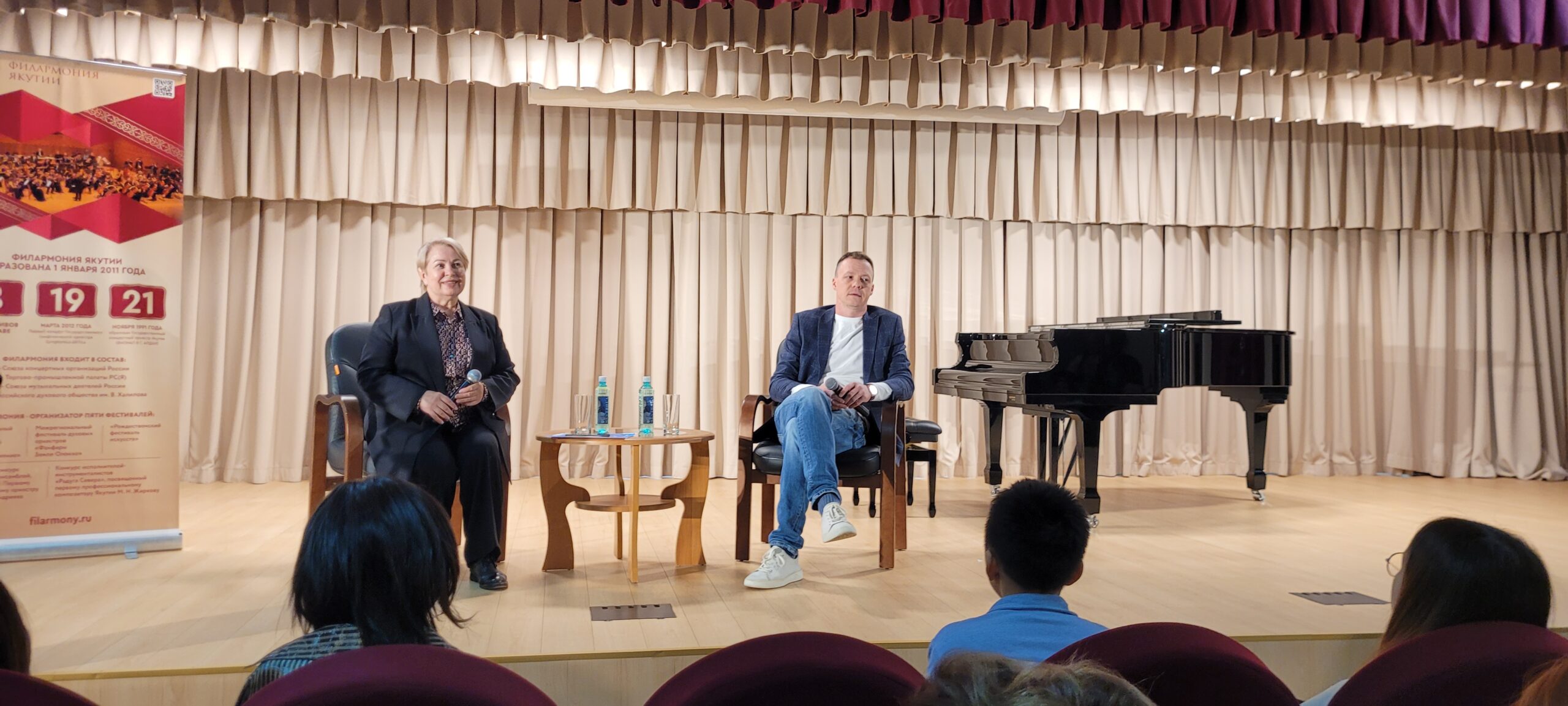 Камерная обстановка и разговор без пиджака, доставили слушателям три часа чистого удовольствия. Вела разговор художественный руководитель   якутской филармонии Наталья БАЗАЛЕВА. Повествование гостя о своей работе, о коллективе, двигалось по спирали, то и дело возвращаясь к тем или иным событиям, чтобы взглянуть на них с разных позиций. Подобная широта и детальность рассказа, безусловно, свидетельствует об интеллекте, кругозоре музыканта, никогда не остающимся равнодушным к интересным явлениям отечественной и зарубежной хоровой музыки.