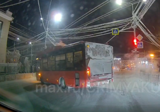 Видеофакт: в Якутске автобус развернулся на перекрестке Чиряева и Дзержинского, сообщает тгк КримЯкутия