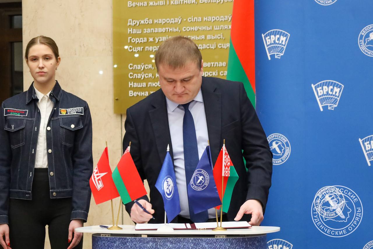 Документ подписали первый секретарь Центрального комитета БРСМ Владимир Павловский и директор Представительства АО «АК «ЖДЯ» в Республике Беларусь Сергей Хмелев.