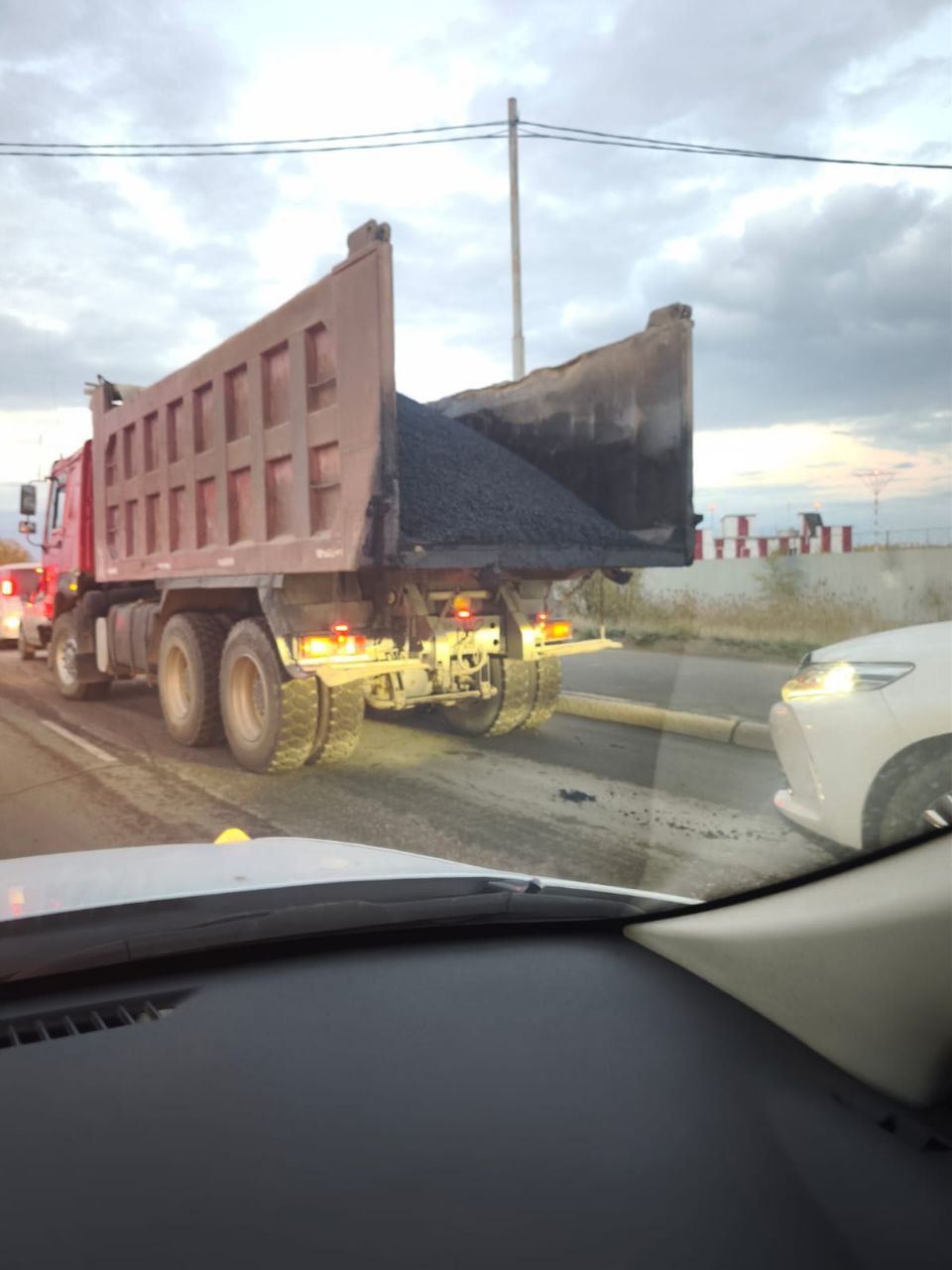 Сегодня для составления протокола об административном правонарушении вызвали водителя большегрузного самосвала, который в прошлую пятницу перевозил в кузове сыпучие грузы (асфальт) без тента, загрязняя дорогу.